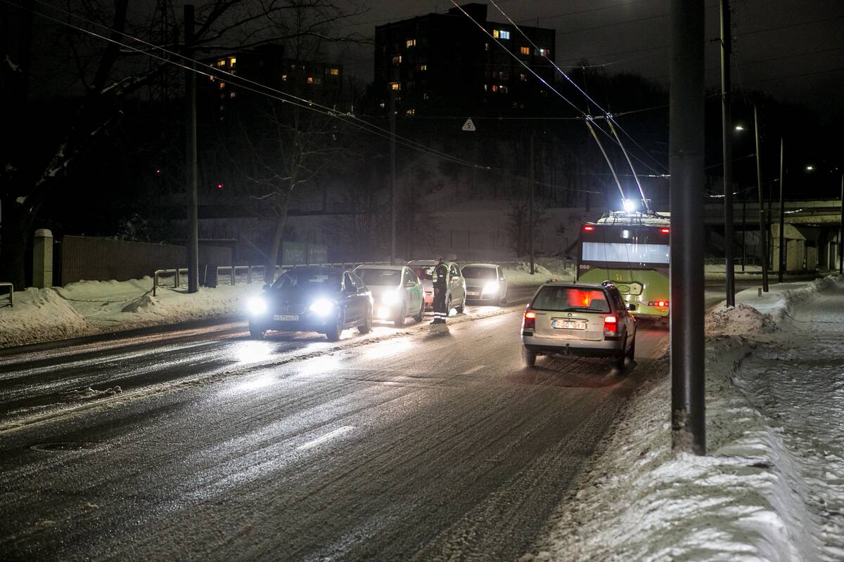 "Pasirinkome šią vietą dėl eismo intensyvumo ir įvertinę, kad čia stabdyti automobilius po šiandienos snygio bus saugu", – "Kauno dienai" teigė kartu su kolegomis reide dalyvavęs Kauno kelių policijos valdybos Kelių patrulių kuopos 2-ojo būrio vadas Povilas Maila.