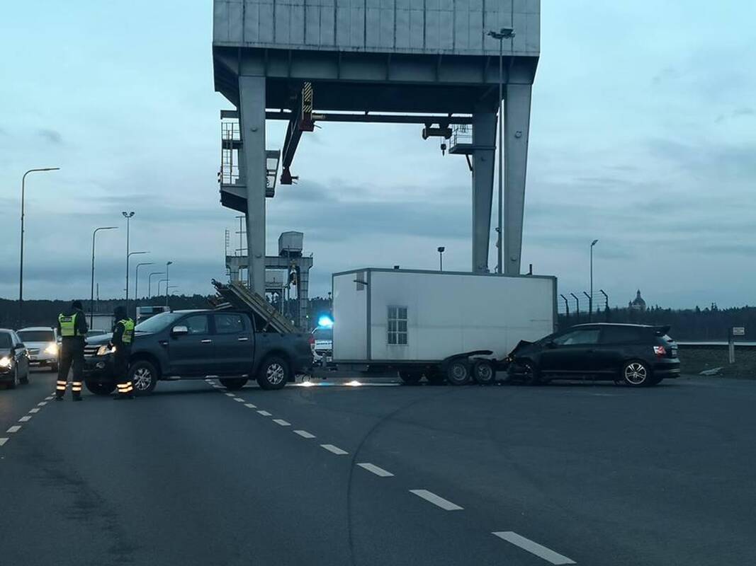 Ant tilto prie Kauno hidroelektrinės susidūrė lengvasis automobilis "Honda" ir visureigis su priekaba.