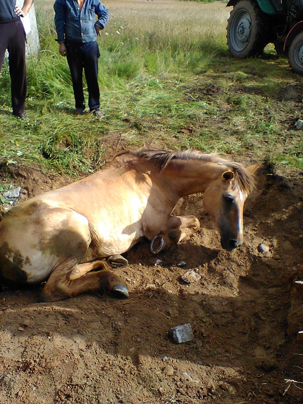 Gelbėjant dviejų metrų gylyje užpakaline kūno dalimi atsidūrusį arklį, prireikė ir vietinių ūkininkų pagalbos. Vienas jų traktoriumi atkasė viršutinį šulinio žiedą. Tuo metu ugniagesiams gelbėtojams teko laikyti nejuokais burzgiančios technikos išsigandusio ir iš paskutiniųjų besimuistančio nelaimėlio galvą.