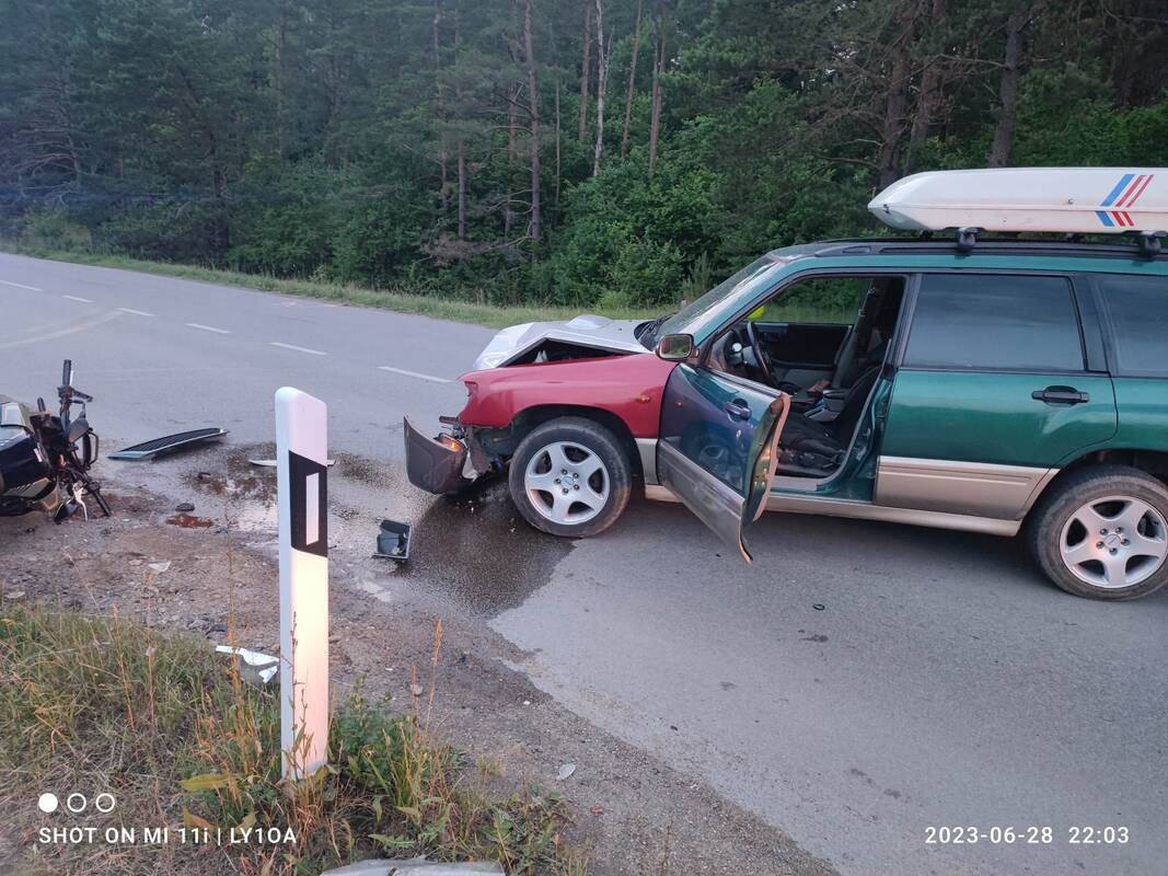 „Reidas Lietuvoje“ praneša, kad kelyje į Rastinėnų sodus susidūrė automobilis „Subaru“ ir motociklas.