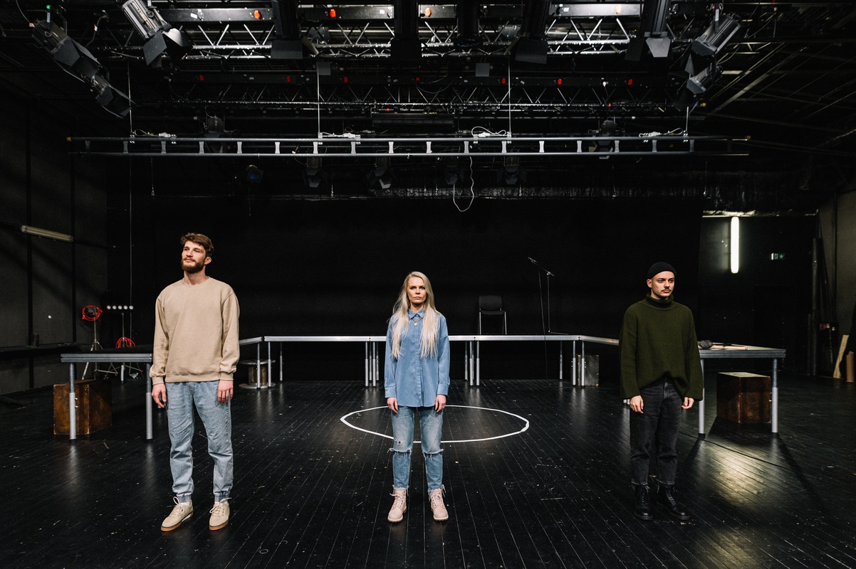 Kolegoms antrino ir aktorius Jonas Viršilas, „kartais atrodo, kad vyksta tarsi suokalbis tarp teksto ir judesio, jie prieštarauja vienas kitam, pavyzdžiui, kalbi kaip „Siri“, o judi labai emocionaliai, bet taip gimsta įdomios metaforos, naujos reikšmės. Labai įdomu, kaip tai priims jaunimas“. Aktoriai minėjo, kad kartais reikia gerokai padirbėti, kad simultaniškai pavyktų apjungti pagal atskirą logiką tekantį tekstą ir judesius.