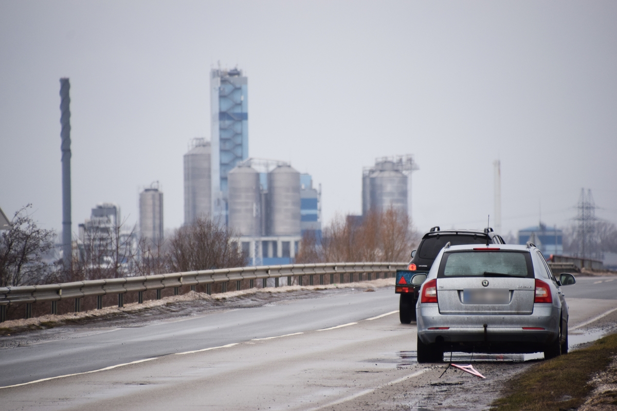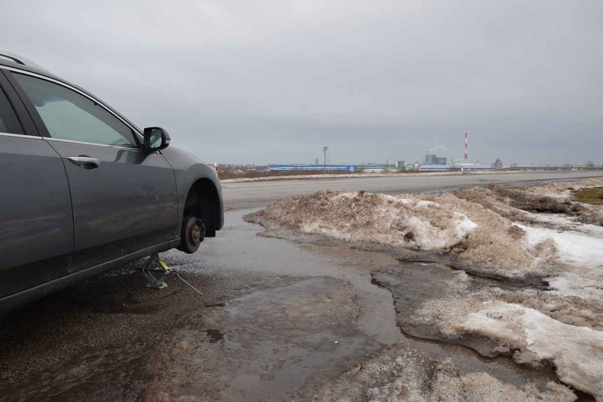 Čia iš pat ryto jau stovėjo keturi automobiliai, sugadintomis padangomis.