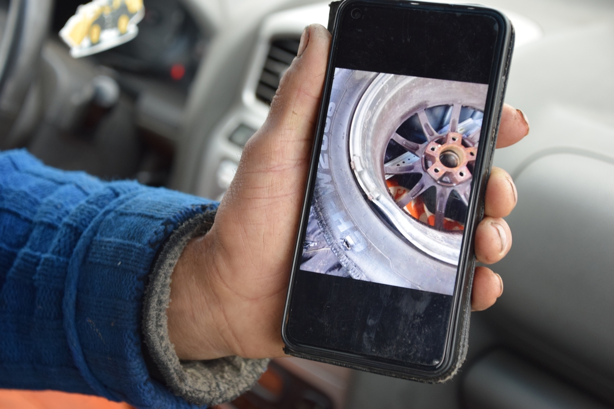 „Važiavau, kai dar tamsu buvo. Nieko priekyje nesimatė. Pataikiau į duobę, ne tik padanga liko kiaura, bet dar ir ratlankis sugadintas“, – pasakojo Kęstutis, vairavęs automobilį „Hyundai“.