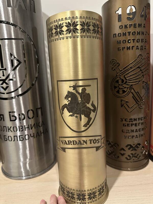 „Ukrainiečiai ne tik atsiuntė vėliavą, ant kurios buvo užrašas „Vardan tos“. Jie ant iššautos gilzės vienoje pusėje išgraviravo Ukrainos herbą, kitoje pusėje – Vytį ir užrašė „vardan tos“, – karių dovaną prisiminė moteris.