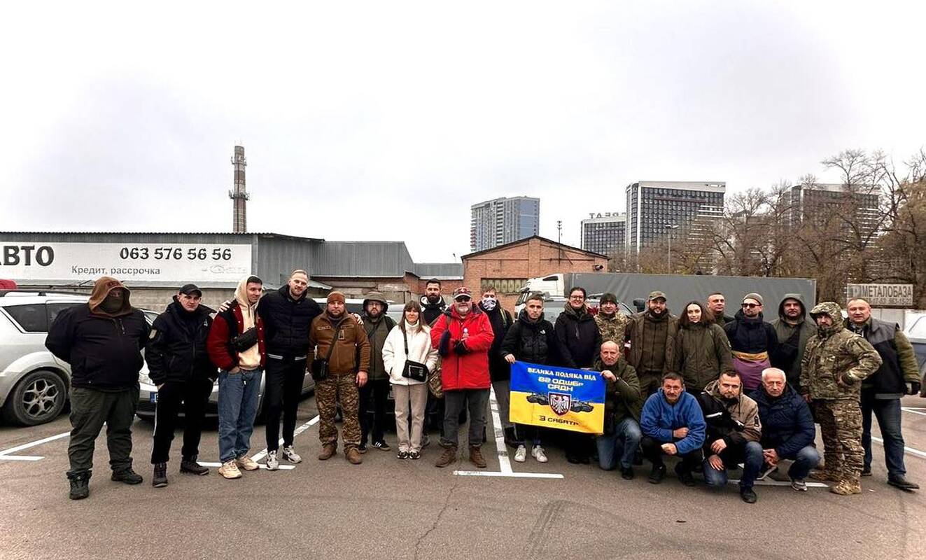 Vyrai ir moterys gabeno 14 visureigių, kone iki lubų prikrautų įvairiausios įrangos, kurios prašė Ukrainos kovotojai.