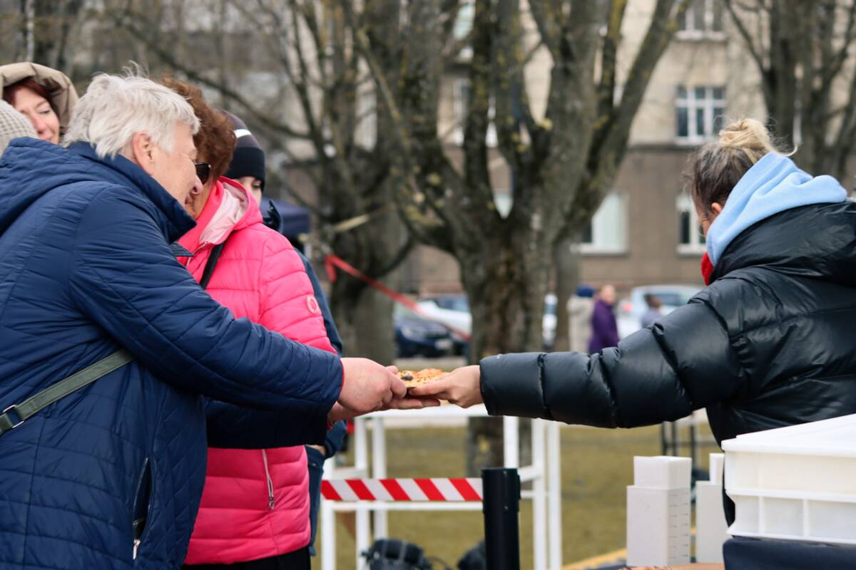 Tuo pat metu kairėje fontano pusėje, ant pievos, virš šimto žmonių laukė nemokamos picos gabalėlio. Anot G. L. Demarco, pica – neapolietiška, tad išties verta paragauti. Eilė per tris valandas nesumažėjo, tad išlaukti pavyko tik kantriausiems.