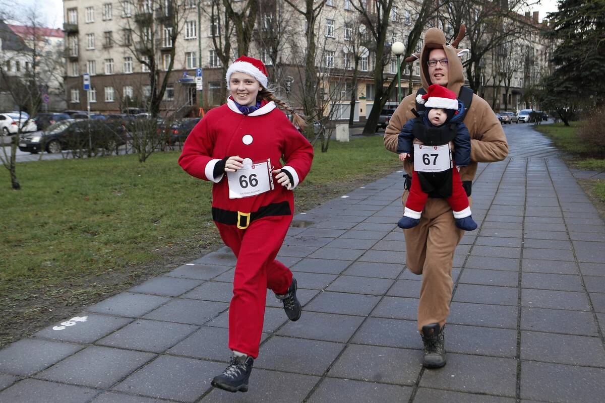 Šį kartą Lietuvos verslo kolegijos surengtame bėgime dalyvavo nemažai jaunų šeimų. Kelios mamos vaikų vežimėlius pavertė dovanų dėžėmis, taip visiems aplinkui parodydamos, kad didžiausia likimo dovana joms yra mažyliai. Didžioji bėgusiųjų dauguma buvo pasipuošę kalėdinėmis kepurėmis ar net elfų rūbais.