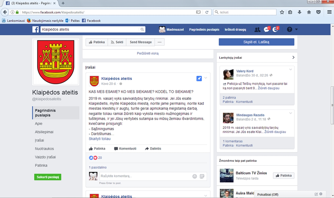 Anot V.Venckutės-Palaitienės, yra dar viena socialinio tinklalapio "Facebook" paskyra, pavadinta "Klaipėdos miesto savivaldybėje", kurioje taip pat panaudoti miesto simboliai.