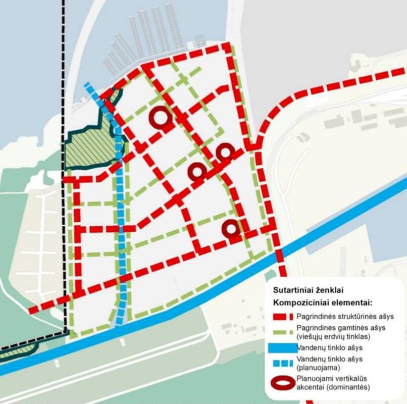 Planuojama teritorija Klaipėdos miesto kontekste Konkursinės teritorijos principinė struktūros schema