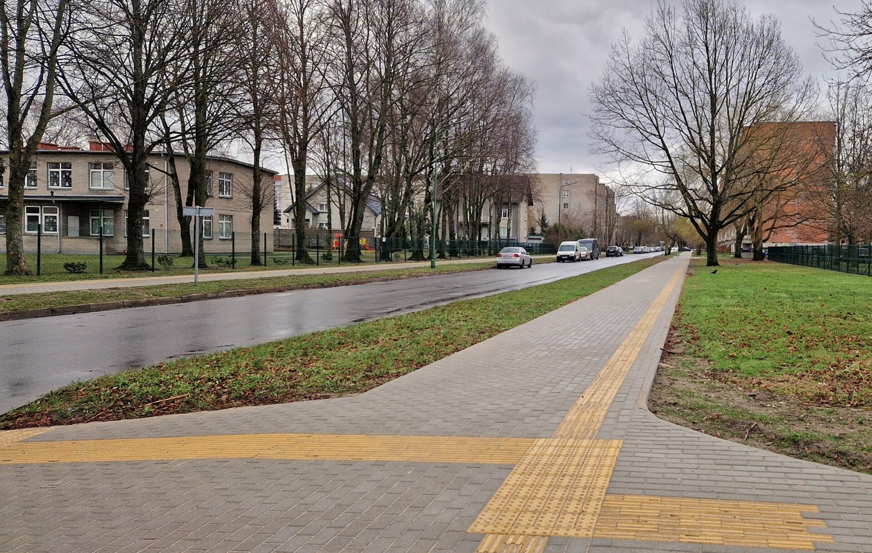 Didelės apimties projektas įpusėjęs ir Sportininkų gatvėje. Čia darbų atliekama už 600 tūkst. eurų – atnaujinama kone 1 km šaligatvių, kartu bus įrengiamas ir dviračių takas. Šiuo metu jau atnaujinta 1300 kv. m. dangų.