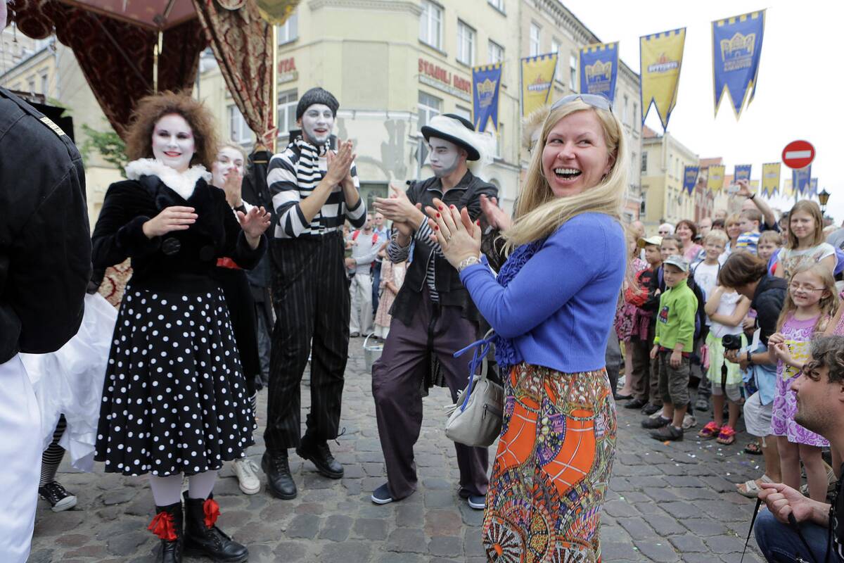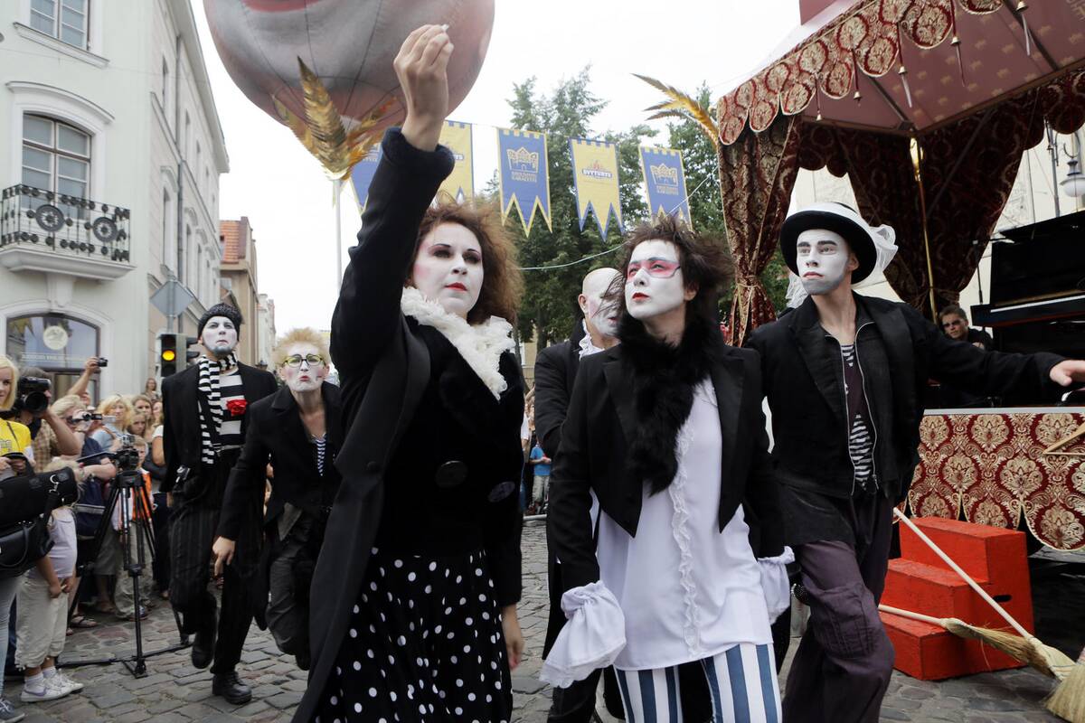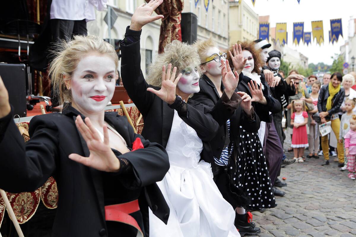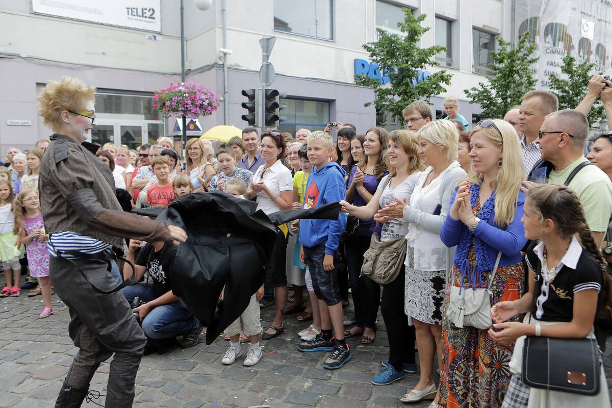 Tiltų ir Turgaus gatvių sankryžoje įsikūrusį įspūdingą meninį kūrinį pristatęs Aleksas Mažonas ir jo pantomimos teatro „A“ komanda aplink vežimą privertė susiburti minią žmonių.