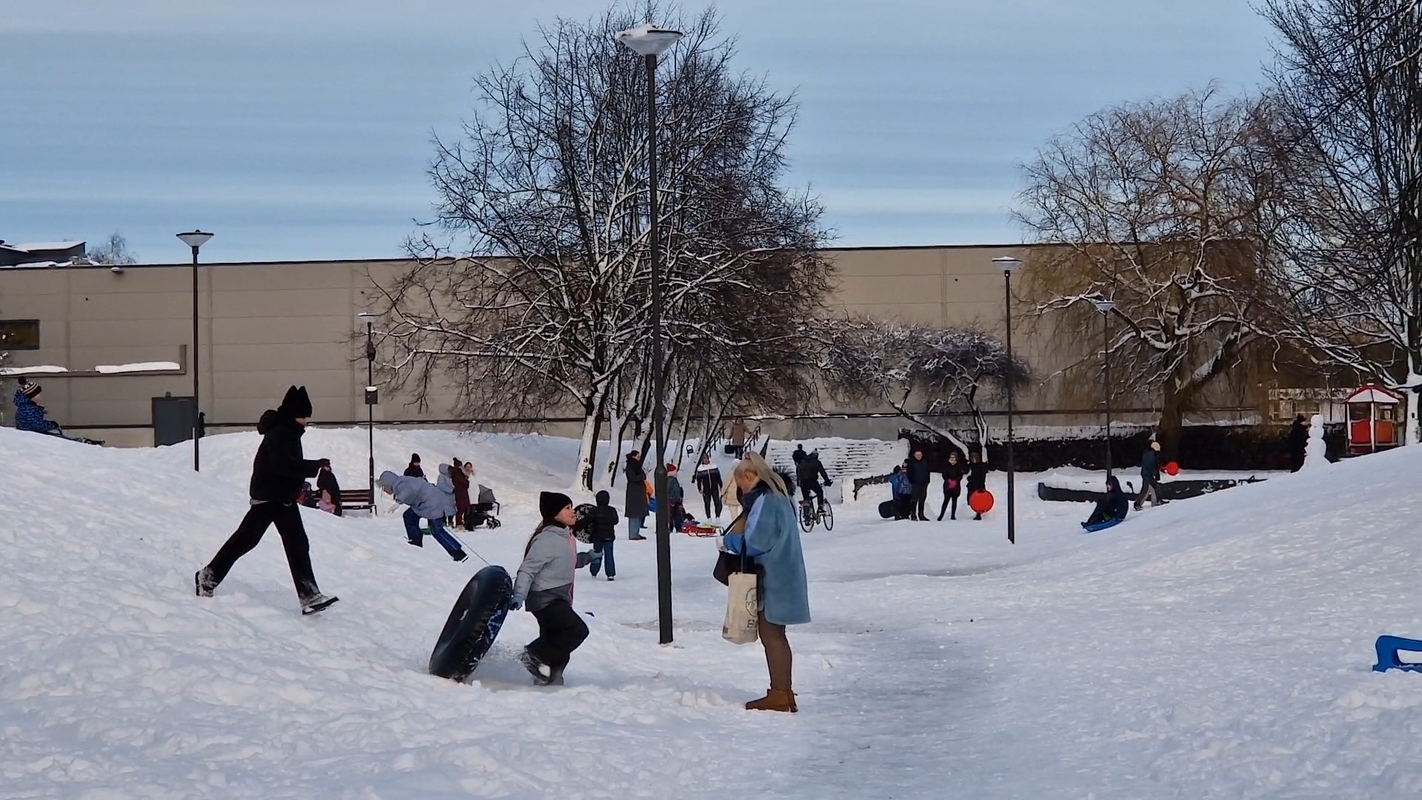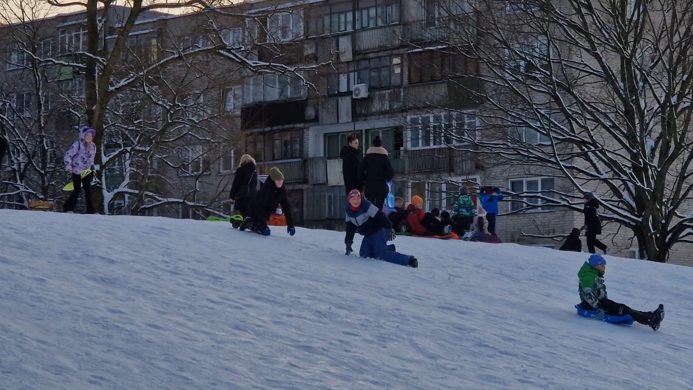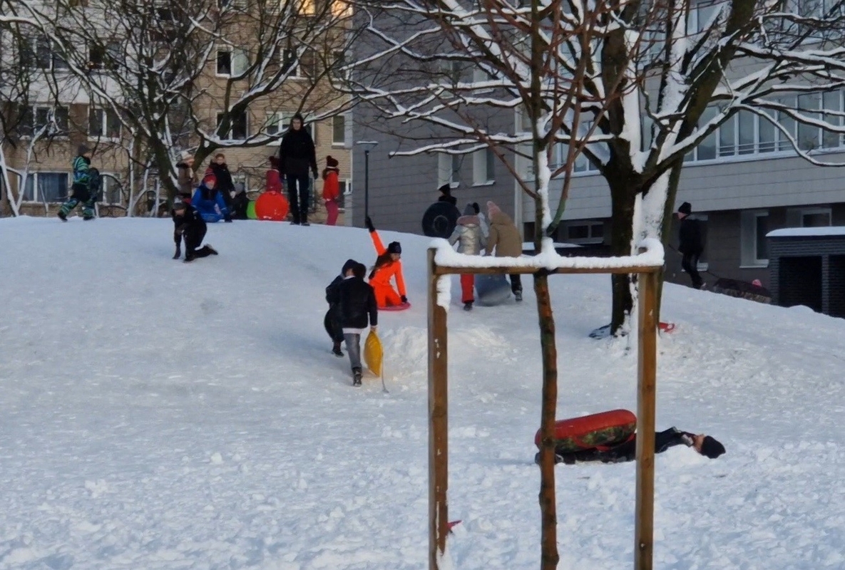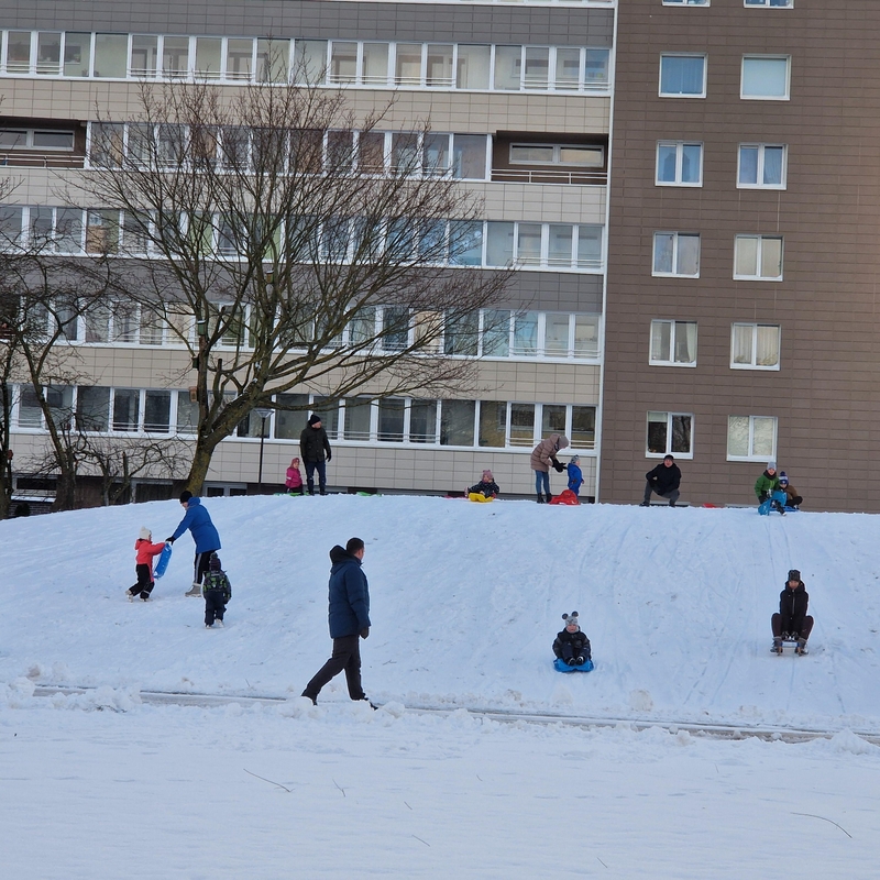 Šeštadienį ir sekmadienį, nustojus pūsti audringam vėjui, Baltijos prospekto, Debreceno gatvės ir Šilutės plento daugiabučiuose gyvenantys vaikai su tėveliais vienas po kito skubėjo į lauką pasidžiaugti gražiu oru. Vieni rankose nešėsi čiuožynes, kitus rogutėmis tempė jų tėveliai.