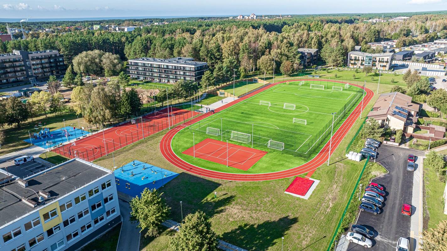 Atidarytas naujas Baltijos mokyklos sporto kompleksas – su dirbtine futbolo danga, krepšinio, tinklinio aikštėmis ir treniruokliais, pritaikytais neįgaliesiems.
