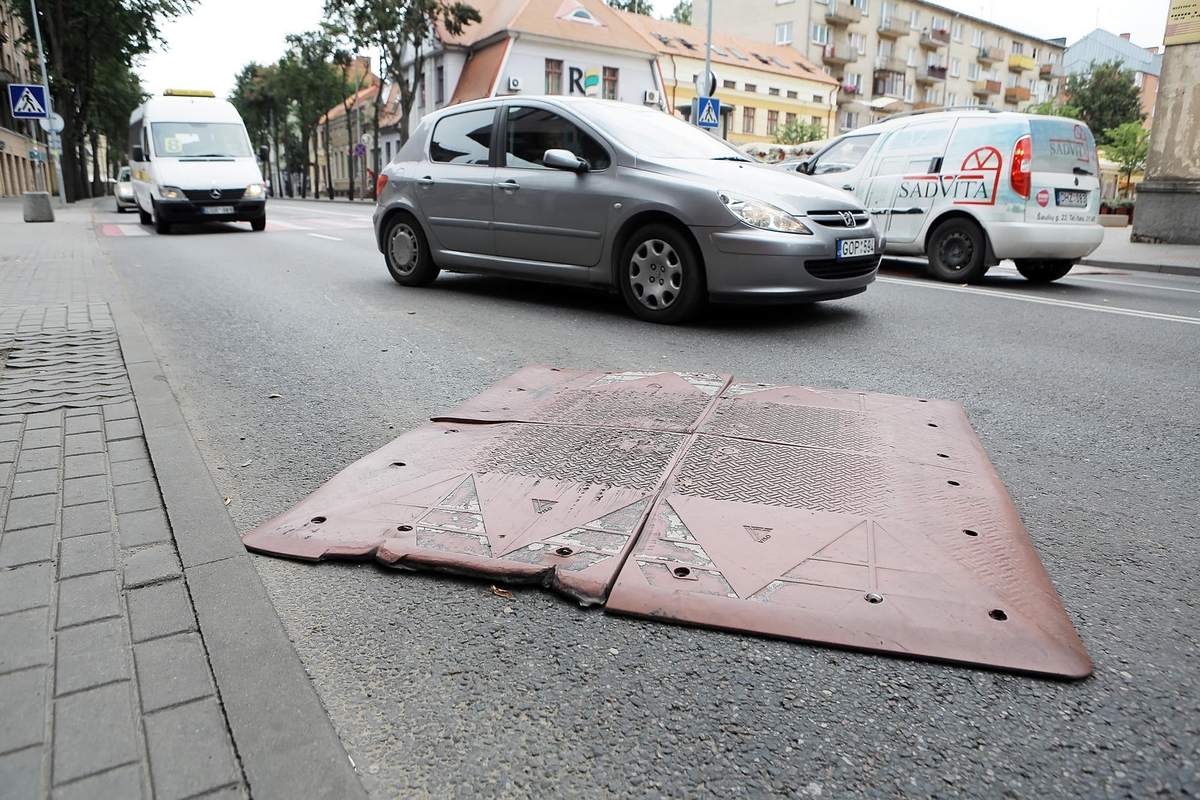 Anot vadovo, plastikinių greičio slopinimo kalnelių mieste mažėja. Tad jie rečiau ir suniokojami. Per laiką visi greičio slopinimo kalneliai bus pagaminti iš asfalto.