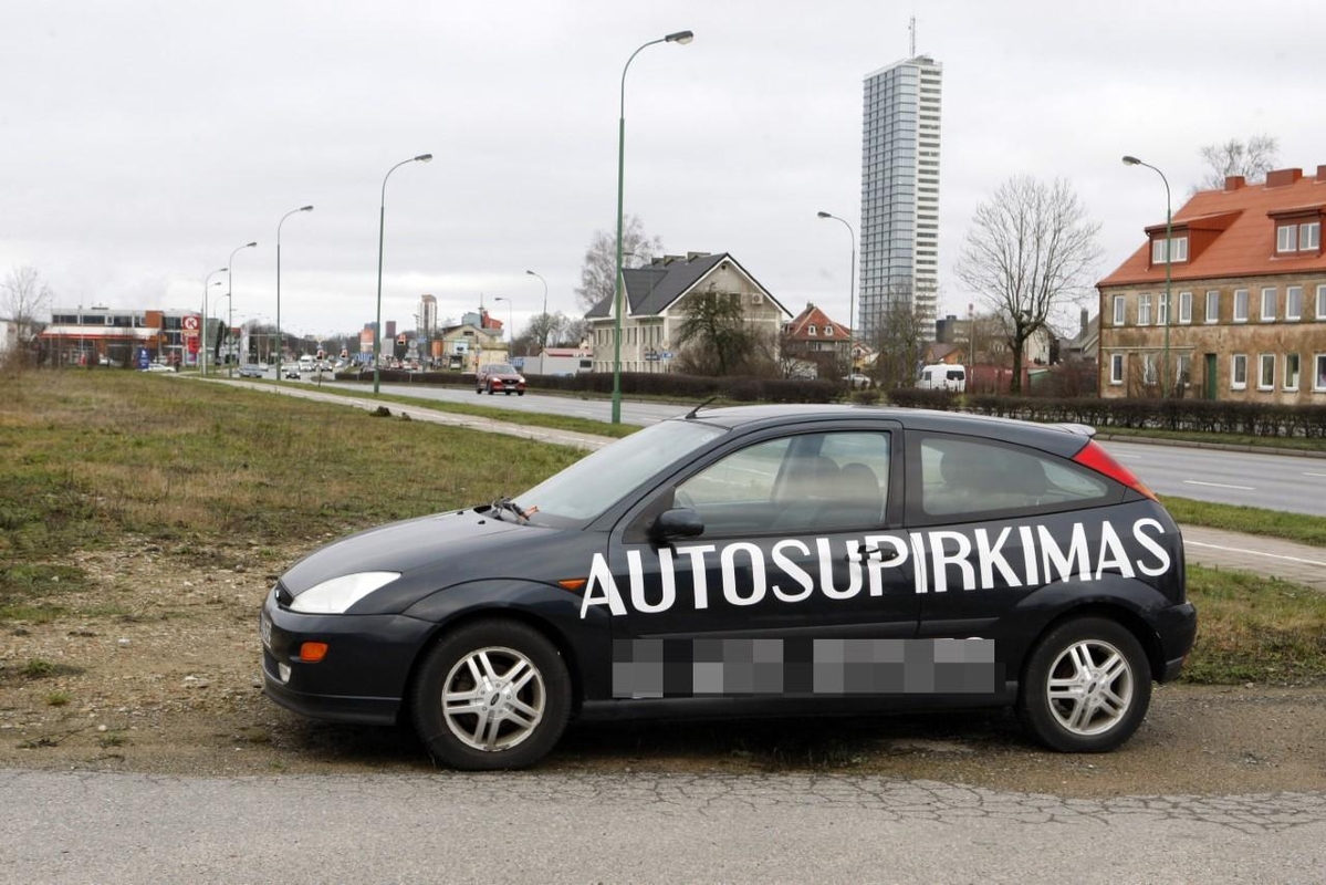 Minijos gatvėje, ties Centriniu Klaipėdos terminalu, užfiksuota dar viena mašina, reklamuojanti automobilių supirkimą. Tokių mieste yra ne viena.