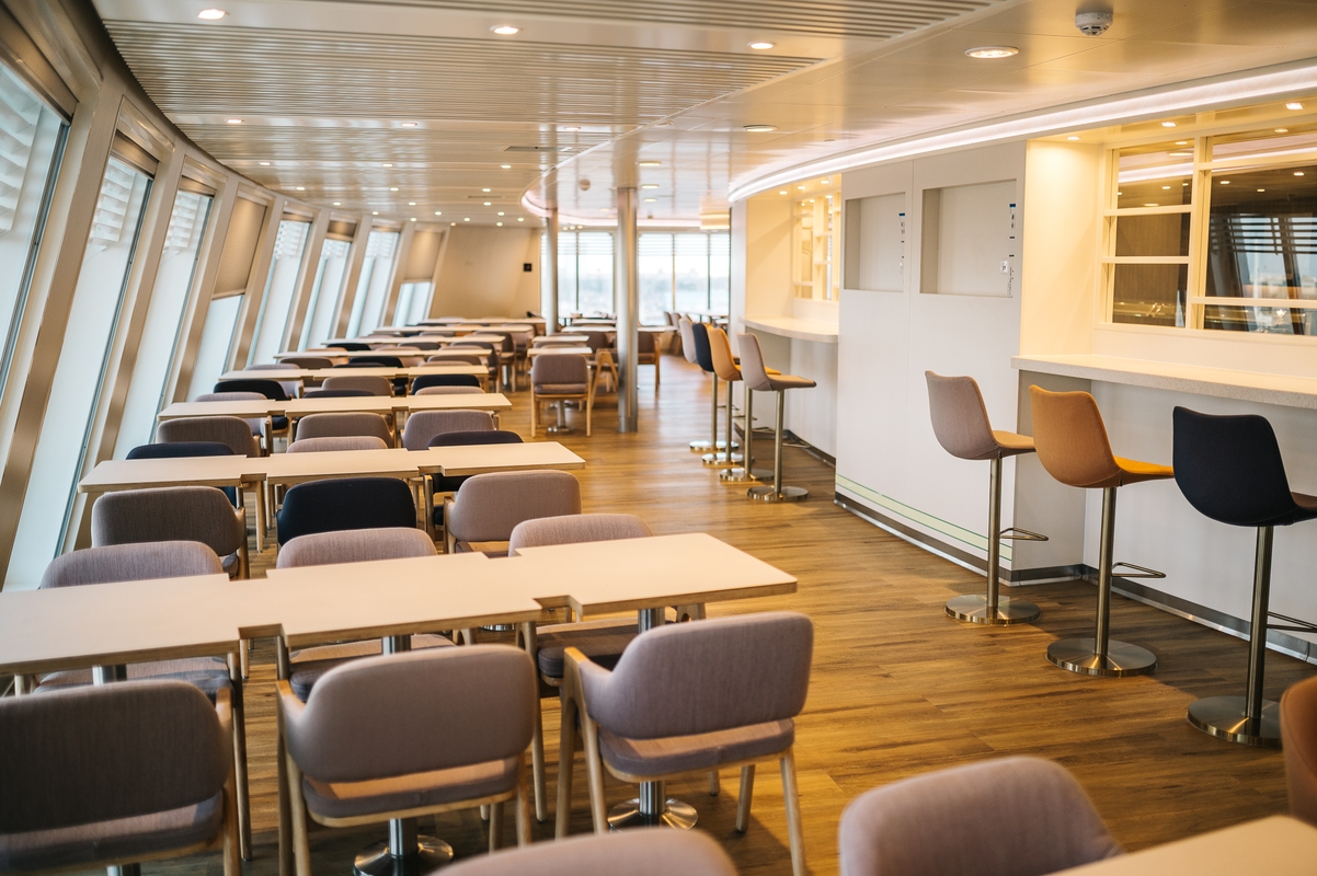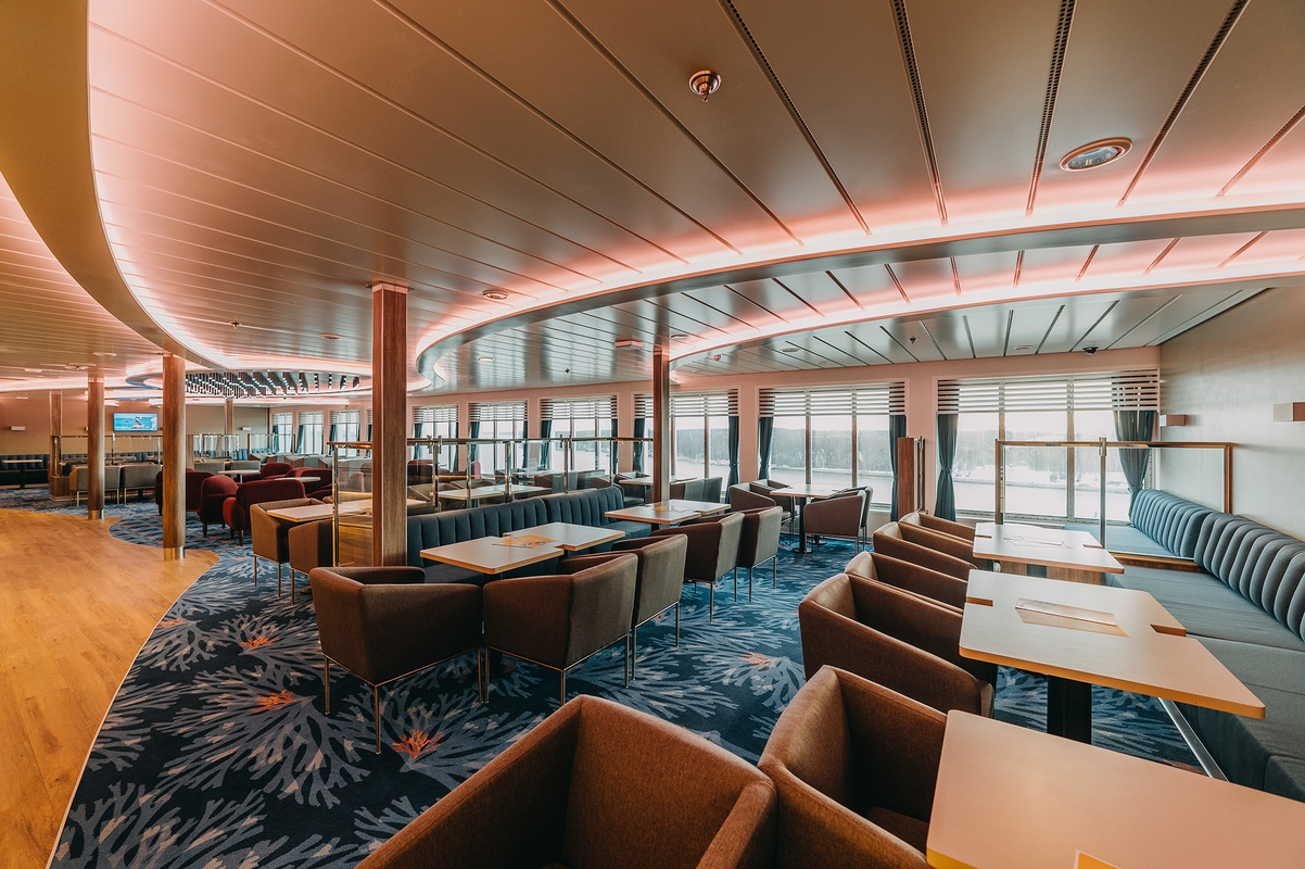 Keliaujantys „Aura Seaways“ jame ras tris restoranus, tris barus, parduotuvę, vaikų žaidimo kambarį, erdvias viešąsias zonas.