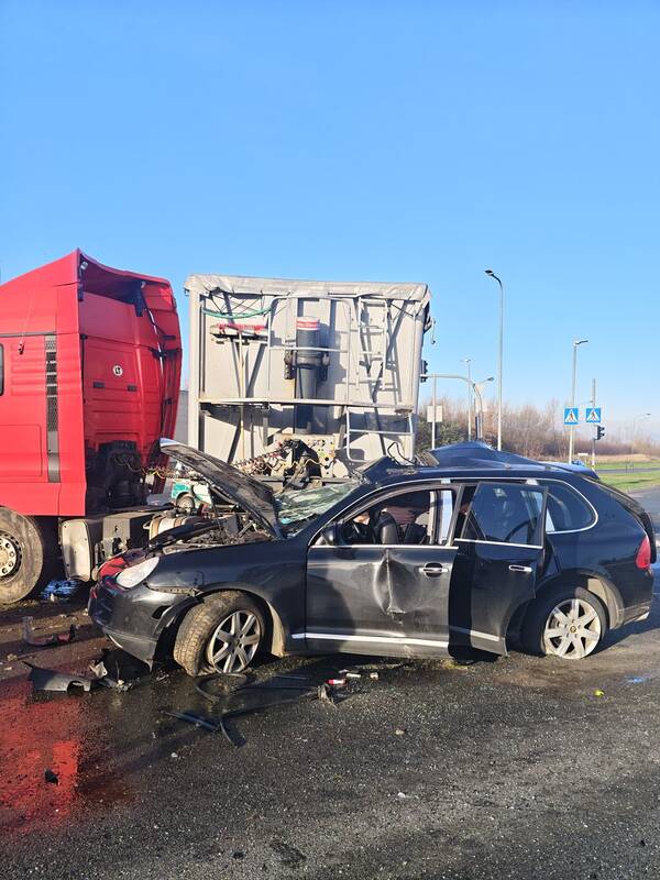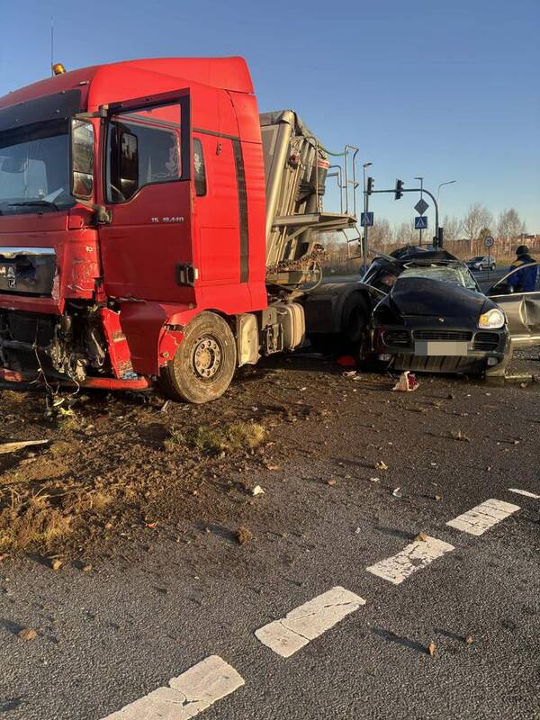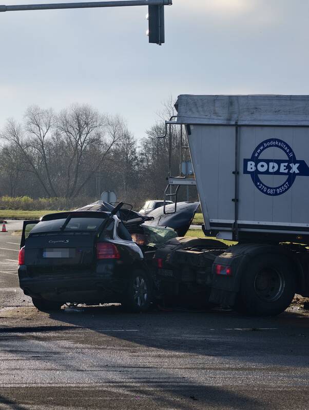 Šioje vietoje susidūrė 35-erių moters vairuojamas automobilis „Porsche“ ir 65-erių vyro vairuojamas vilkikas.