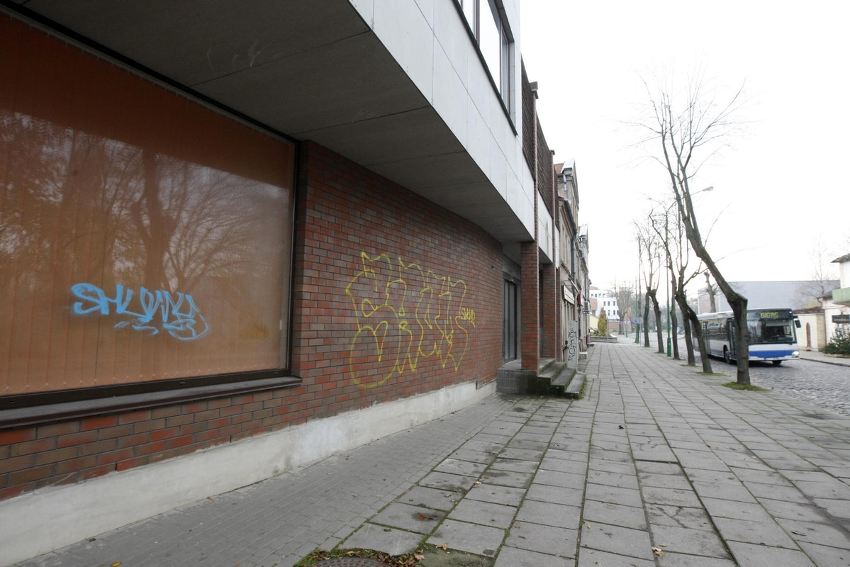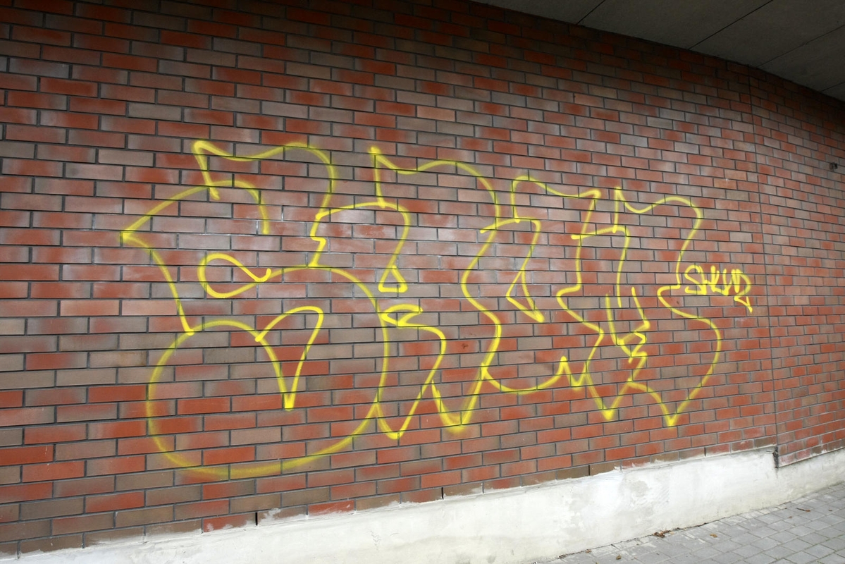 Šeštadienio rytą klaipėdiečius nustebino pastato veidą subjaurojusių grafičių „meistrų“ darbelis. Ant Bangų g. 8 namo niekdariai beveik per visą pastato sieną geltonais dažais iškeverzojo jiems patiems suprantamą užrašą, o greta esantį langą pažymėjo mėlynais dažais.