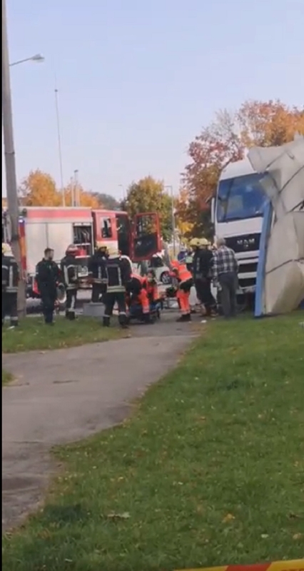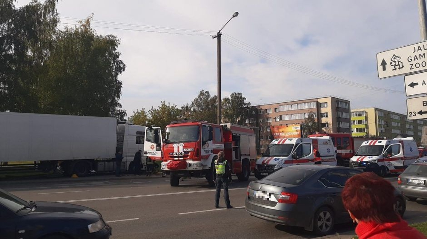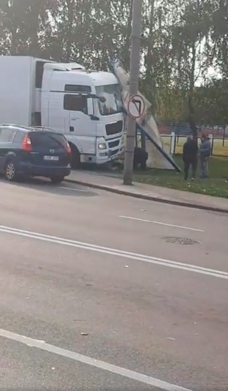 Kaip pranešė Bendrasis pagalbos centras, 14.52 val. pranešta, jog šalia Beržų ir J. Basanavičiaus gatvių sankryžos krovininis automobilis įvažiavo į viešojo transporto stotelę.