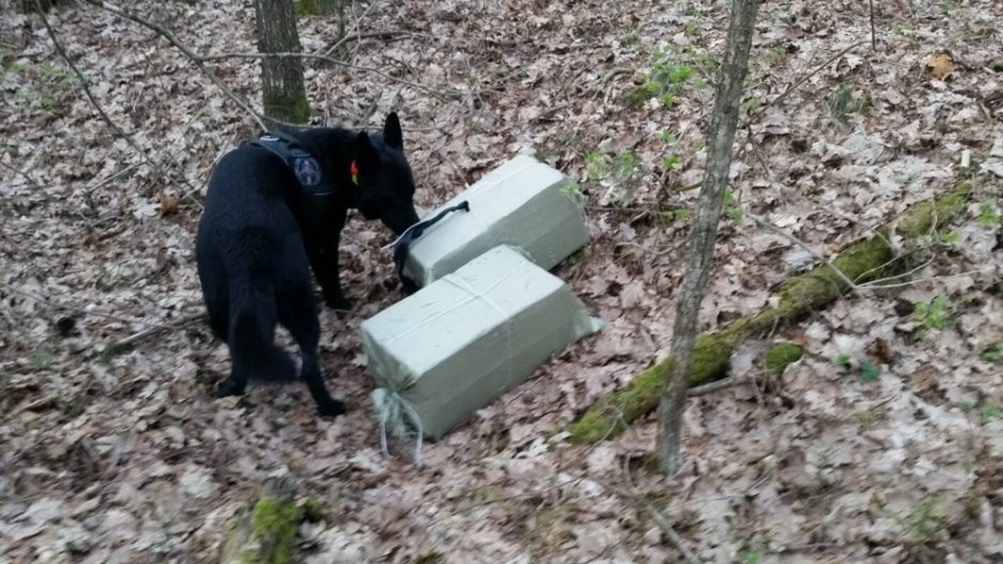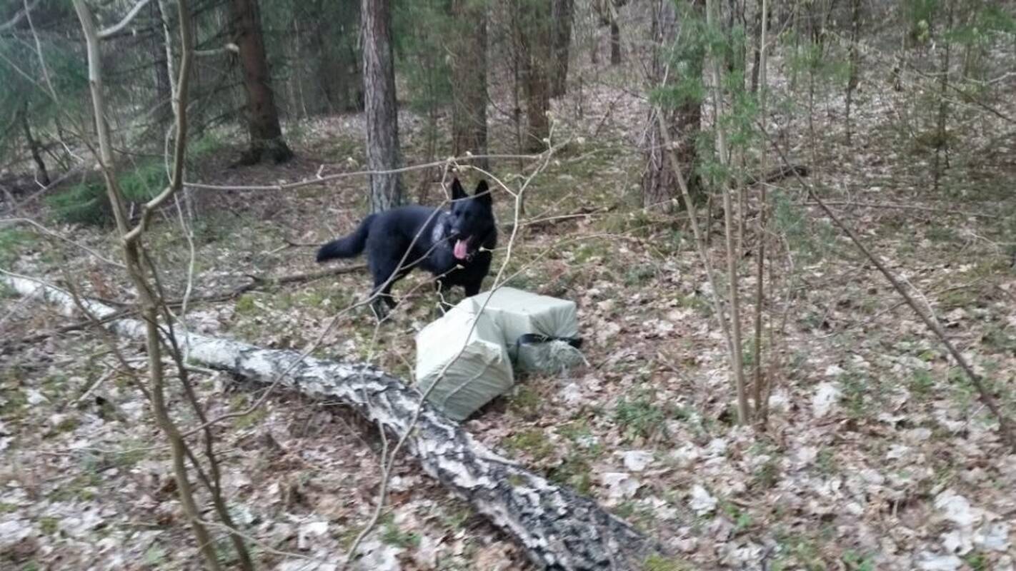 Pasieniečiai patikrino vietovę. Kentas maždaug už 50 metrų nuo sienos su Baltarusija rado, įtariama, sulaikytųjų neštą krovinį – 2 tūkst. pakelių cigarečių „Minsk Superslims 5“ su baltarusiškais akcizo ženklais.