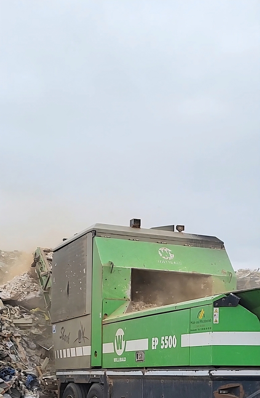 Tabako gaminiai naikinami smulkinimo aparatu.