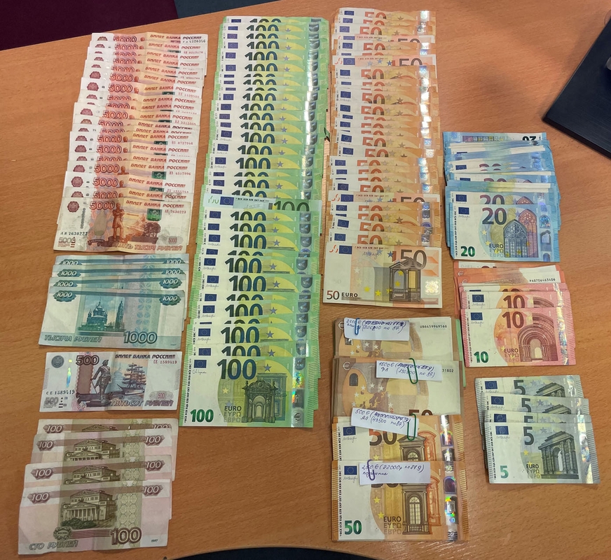 Juo vykę du Rusijos piliečiai nedeklaravę mėgino įvežti didelę pinigų sumą: vienas buvo paslėpęs daugiau nei 11 tūkst. eurų, pas kitą pareigūnai rado virš 10 tūkst. eurų. Pinigai buvo sulaikyti, abu Rusijos piliečiai po apklausos paleisti, skyrus kardomąją priemonę – dokumentų paėmimą.