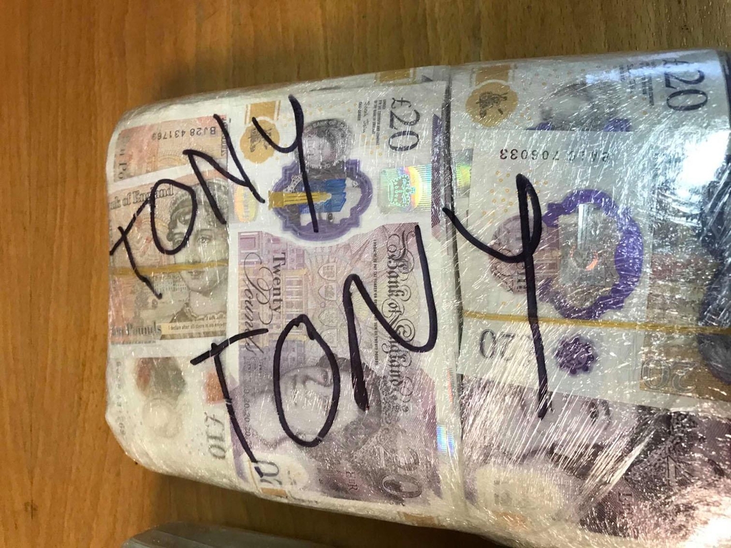Mašiną vairavęs Lietuvos pilietis pareigūnams teigė gabenantis siuntas iš Didžiosios Britanijos į Lietuvą. Patikrinus krovinį, vienoje iš gabentų dėžių rasti polietileniniai paketai, pilni banknotų – iš viso šitaip buvo paslėpta 118 tūkst. 315 Didžiosios Britanijos svarų sterlingų.