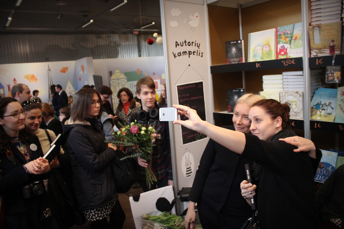 Nuaidėjus aplodismentams po jaukaus ir žaismingo knygos pristatymo, nulipusią nuo scenos autorę pasitiko gerbėjų gėlės ir nuoširdūs sveikinimai. Vos po kelių akimirkų prie leidyklos stendo nusidriekė ilga eilė skaitytojų, norinčių užduoti vieną kitą klausimą, nusifotografuoti ir, žinoma, paprašyti autografo ant dar dažais kvepiančios knygos puslapių.