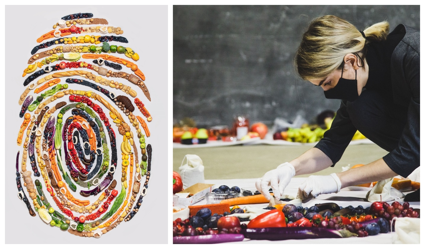 Beveik 5 kvadratinių metrų kūriniui panaudotos įvairios kruopos, daržovės ir vaisiai, duonos ir pieno gaminiai. Visi produktai po „Foodprint“ įamžinimo buvo kruopščiai surinkti ir perduoti projekto partneriui „Maisto bankui“. Kūrinį iš kelių dešimčių skirtingų produktų užtruko padaryti 12 valandų, jį nurinkti – dar viena valanda.
