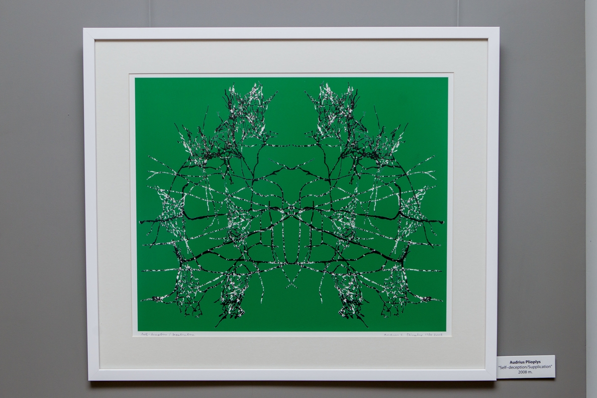 Prezidento V. Adamkaus bibliotekoje eksponuotoje parodoje dr. A. Plioplys pristatė kūrinius iš įvairių darbų ciklų, dėl šios priežasties kūrinių potėmės skiriasi: sąmonė, mintys, prisiminimai, suvokimas – visa, kas vyksta mentaliniu lygiu.