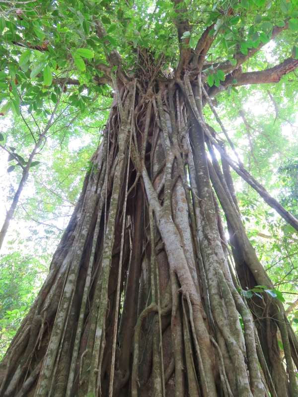 Miške stebina augalų įvairovė, medžių dydis. Užverti galvą, o viršūnės – nematai. Šventu laikomas kapokmedis užauga iki 70 metrų aukščio, išsiskiria didžiulėmis, palei žemę nusidriekiančiomis šaknimis. Džiunglėse auga daugybė fikusų smaugikų. Jų sėklas ant kito medžio gali atnešti koks paukštis, kai sėkla sudygsta, augalas išleidžia orines šaknis, kurios nusileidžia iki žemės ir įsitvirtina. Šaknys pradeda spausti augalą šeimininką, kol šis galiausiai apmiršta. Lieka keistas karkasas iš daugybės orinių šaknų. Tarp jų gyvena įvairūs gyvūnai, gali net žmogus praeiti.