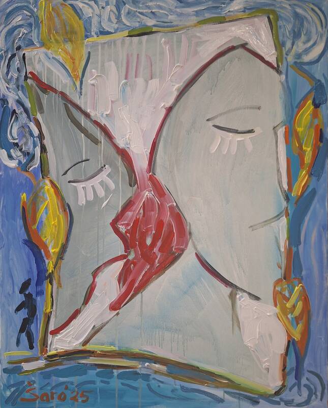 „Turėjau planą nuo 2025 m. pradžios pabaigti su dainomis ir grįžti prie portretų, bet kai su viena moterimi jos portreto tapymą derinome kelis mėnesius, supratau, kad portretus tapyti šiais laikais bus sunku, o gal net neįmanoma“, – dalijasi Šaro. Kodėl? Nes nori tapyti gyvai. Tik tuomet atsiranda tapytojo ir žmogaus santykis.