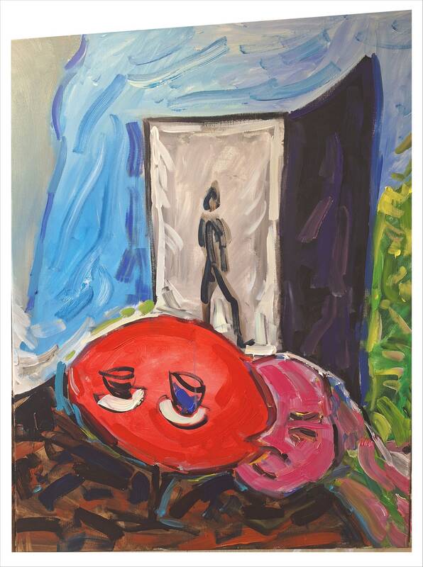 „Šiame paveiksle matome raudoną stalą, ant kurio stovi du puodeliai. Viename puodelyje juodas skystis, kitame – mėlynas. Raudona spalva kuria įtampą. Juodas skystis simbolizuoja santykių pabaigą, mėlynas skystis – ramybę. Jis išeina, o ji pasilieka. Jo puodelis juodas, jos – mėlynas. Galima spėti, kad išsiskyrimas, santykių nutraukimas grąžina jai ramybę“, – spalvų simboliką aiškina Šaro ir priduria, kad kiekvienas potėpis, spalva, forma abstrakčiajame simbolizme tampa simboliniu ženklu, turinčiu gilesnę prasmę.