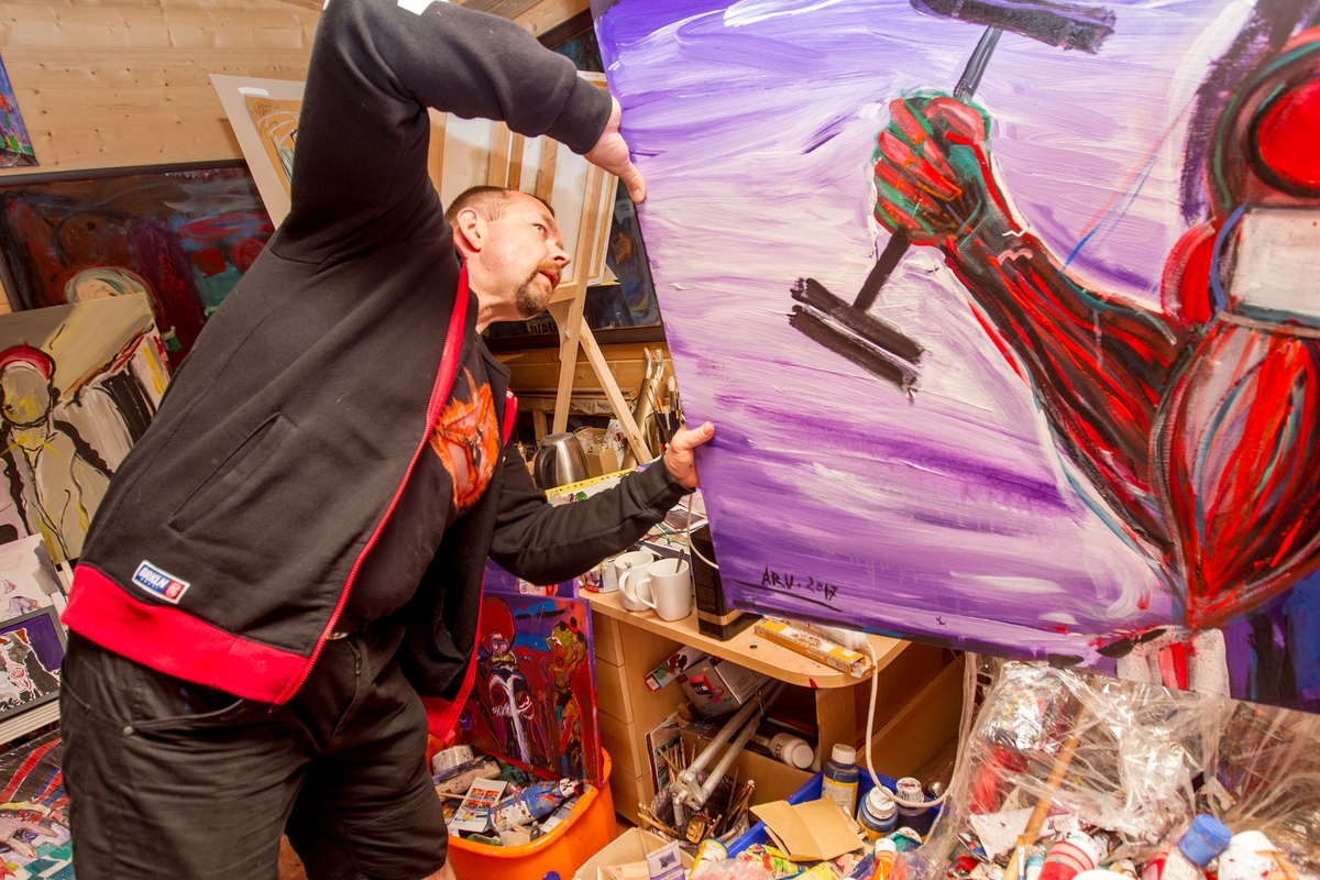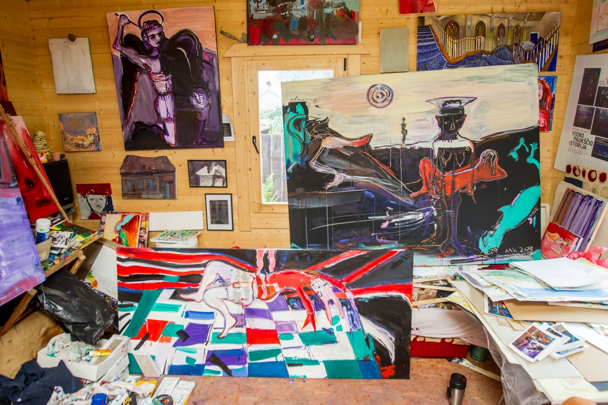 Kodėl kvadratiniais metrais išmatuojama erdvė atrodo kitokia? Nepanaši į kažką, nors tokių pačių daiktų, esančių kiekvienose dirbtuvėse, tikrai galima rasti. Juk kiekvienas menininkas kūrybinėje studijoje atkuria vidinio, sielos, pasaulio vaizdą, išreiškia jį materija – perkelia į kitą būvį.