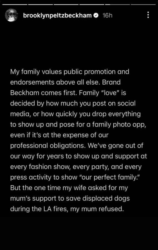 „Pirmoje vietoje visada yra „Brand Beckham“. Šeimos „meilė“ matuojama tuo, kiek įkeli socialiniuose tinkluose“, – rašė jis.