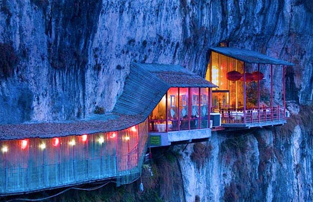Kinijoje, Hubėjaus provincijoje įsikūręs „Fangweng“ restoranas kabo prisitvirtinęs kalno pašonėje, virš Chang Jiang upės. Nors aukščio bijantis žmogus jame turbūt negalėtų praryti nė kąsnio, tačiau kiekvienam įsidrąsinusiam vakarienė šiame restorane į atmintį įsirėš visam gyvenimui. Didžiausi nutrūktgalviai gali ryžtis ir netoliese esančiam šuoliui su guma! Turbūt galima sakyti, jog tai – vakarienė ant pasaulio krašto.