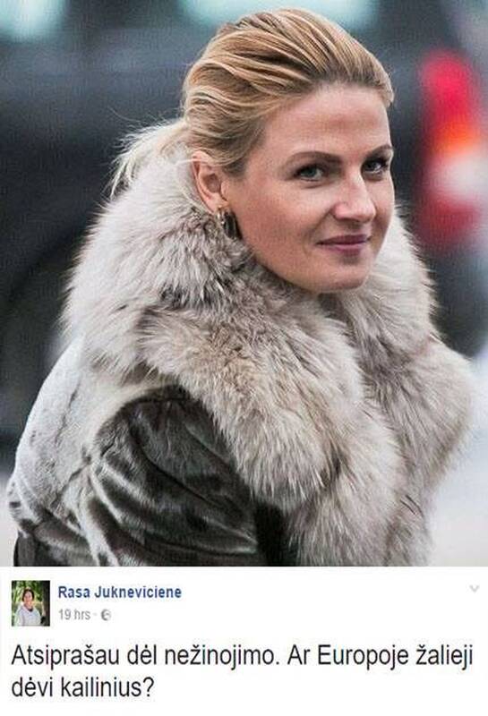 Buvusi Krašto apsaugos ministrė Rasa Juknevičienė savo socialinio tinklo profilyje įkėlė G. Kildišienės nuotrauką, kurioje ji įamžinta dėvinti kailinius. R. Juknevičienė klausė: „Atsiprašau dėl nežinojimo. Ar Europoje žalieji dėvi kailinius?“.