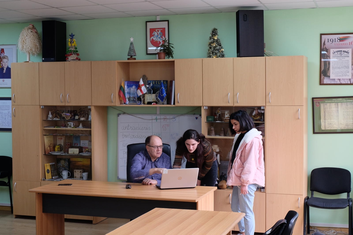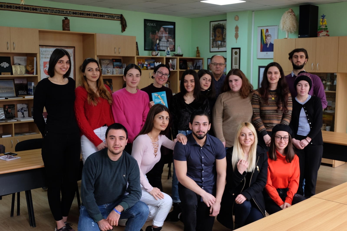 Susiradusi 10-ąjį Sakartvelo technikos universiteto korpusą, 201 kabinetą, įvirstu pro duris ir esu maloniai nustebinta: kartvelai tiesia man rankas ir sveikinasi "Labas", "Labas rytas"… Netrukus pasirodo ir pats šio jaukaus Lietuvių kalbos ir kultūros centro šeimininkas – prof. V.Kavaliauskas. Išsyk matyti – gerbiama ir mylima asmenybė, aplink kurią akimirksniu tarsi bičių spiečius susiburia lietuviškai bandantys šnekėti studentai. Atsiprašinėdamas už vėlavimą profesorius juokingai tarsteli: "Atleiskit, begyvendamas Sakartvele, apkartvelėjau visai..."