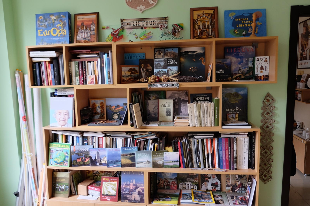 Lietuvos atributika, vadovėliai, knygos, gintaro gaminiai, krepšinio suvenyrai atsirado pamažu. Nepatikėsite, bet daugiau kaip 80 proc. centro eksponatų yra dovanos, kurias gavau nuolankiai prašydamas.