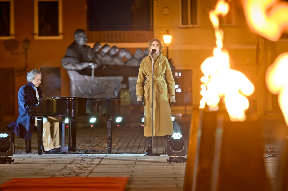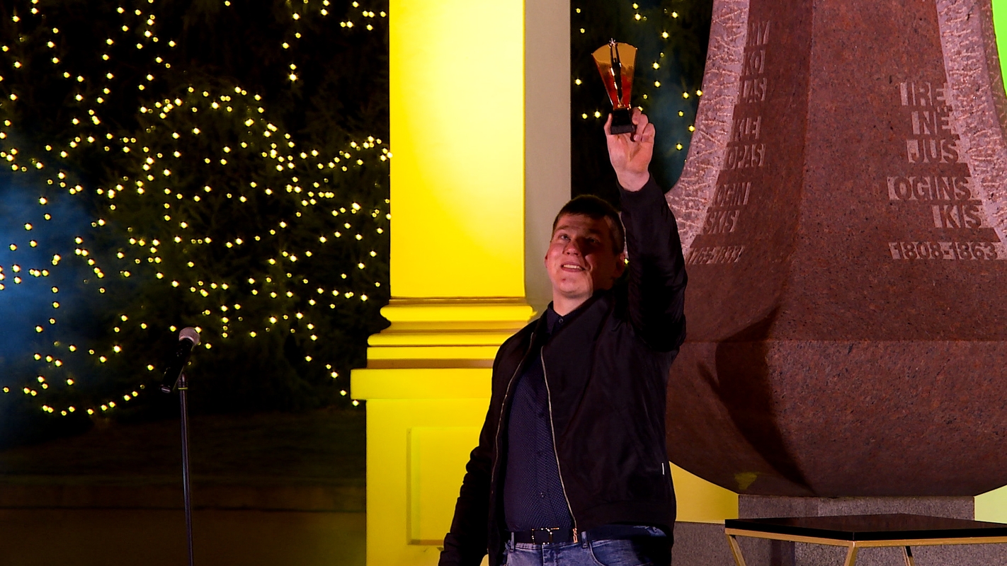 Į Alytų nuvykęs Marijus Mikutavičius vyrams ne tik įteikė statulėlę, bet ir dovanojo savo koncertą.