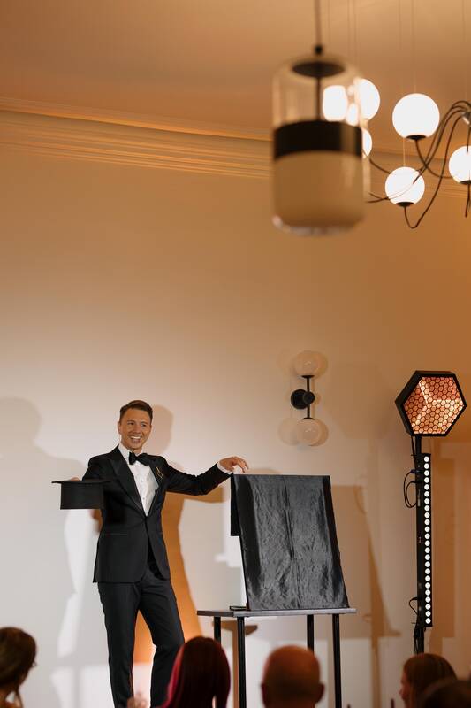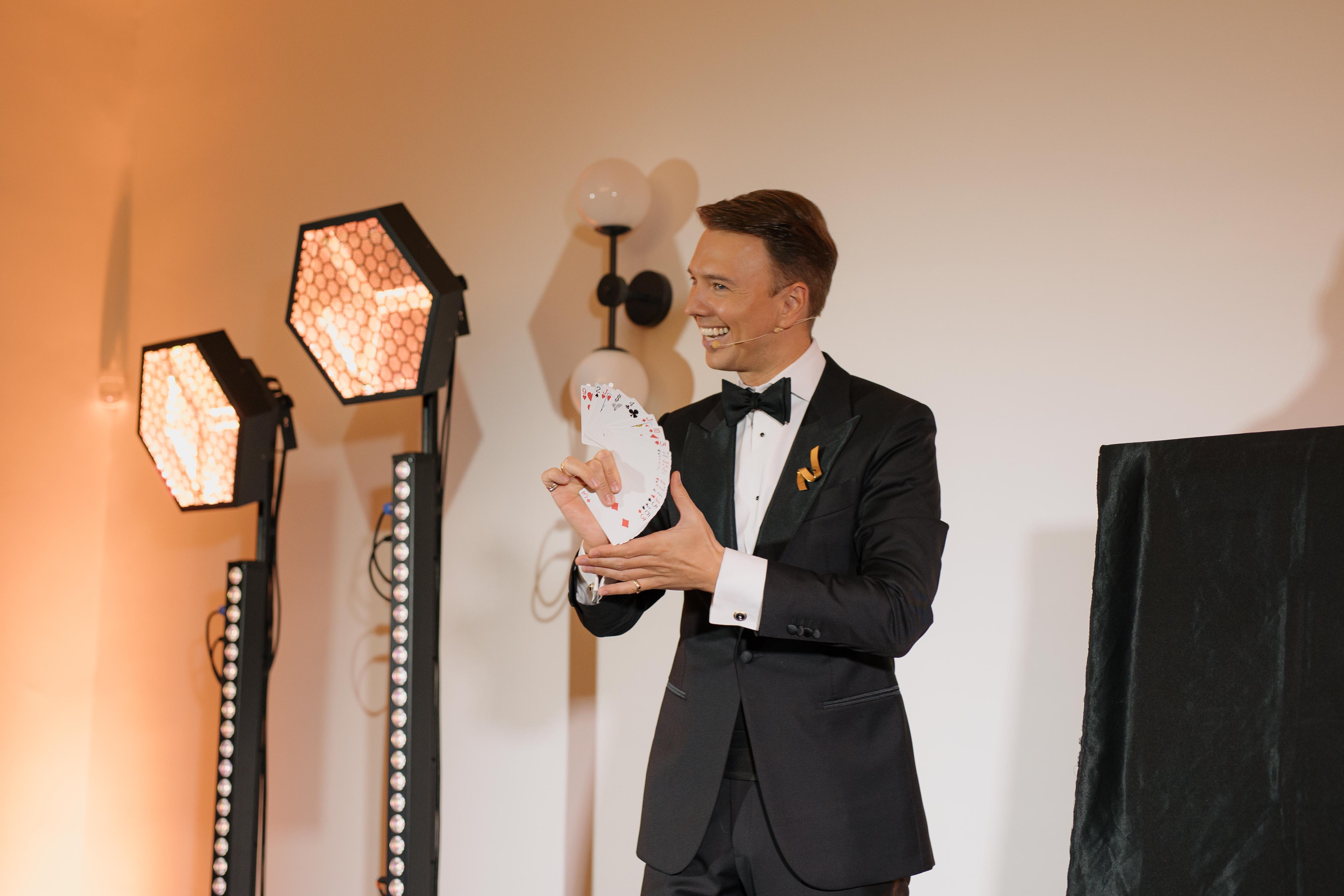 Apsispręsti padėjo supratimas, kad renginyje aš nenoriu daryti vien tik magijos triukų. Labiausiai mėgstu tokius projektus, kuriuose galiu būti ir magas, ir renginio vedėjas. Beje, ar žinojote, kad amerikietis Johnny Carsonas, kuris ir pradėjo visą šią vėlyvų pokalbių laidų tradiciją, iš tiesų buvo… magas mėgėjas? Todėl puikiai žinojau tokių laidų formatą, tik visada įsivaizdavau save labiau kaip pašnekovą, o ne kaip šou vedėją.