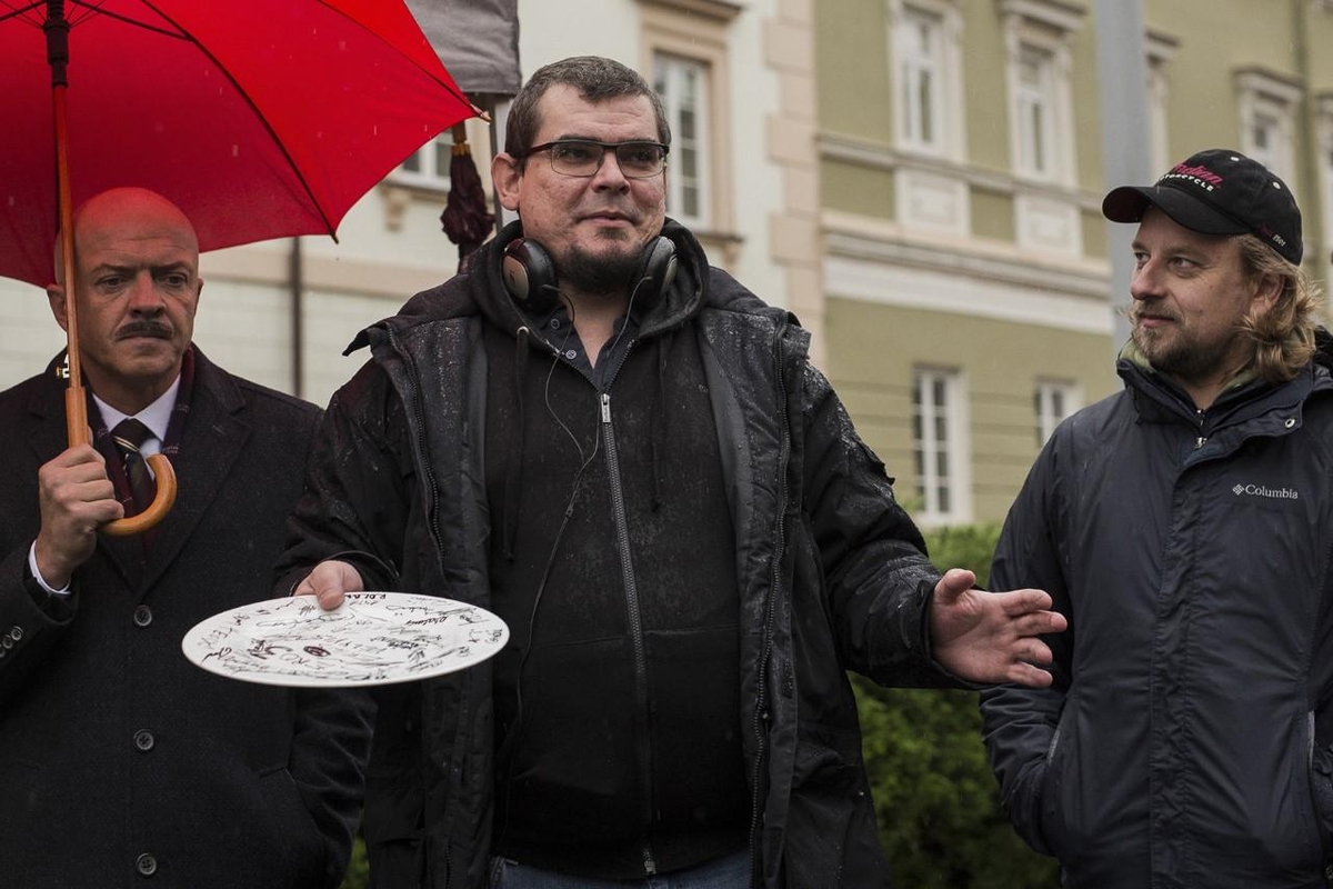 Pliaupiant lietui, nuo pat ankstyvo ryto Prezidentūros prieigose su skėčiais būriavosi filmo kūrybinė grupė. Nepaisydami darganoto oro, Inga Jankauskaitė, Rimantė Valiukaitė, Remigijus Sabulis ir Ramūnas Rudokas buvo puikios nuotaikos. Prieš pat filmavimą E. Vėlyvio komanda laikėsi visų kinui būdingų tradicijų – po pirmojo kadro buvo daužoma lėkštė su visos komandos parašais. Po to kiekvienas komandos narys pasiėmė po šukę atminčiai. Toks lėkštės daužymas, pasak režisieriaus E. Vėlyvio, yra tarsi sėkmės garantas filmui.