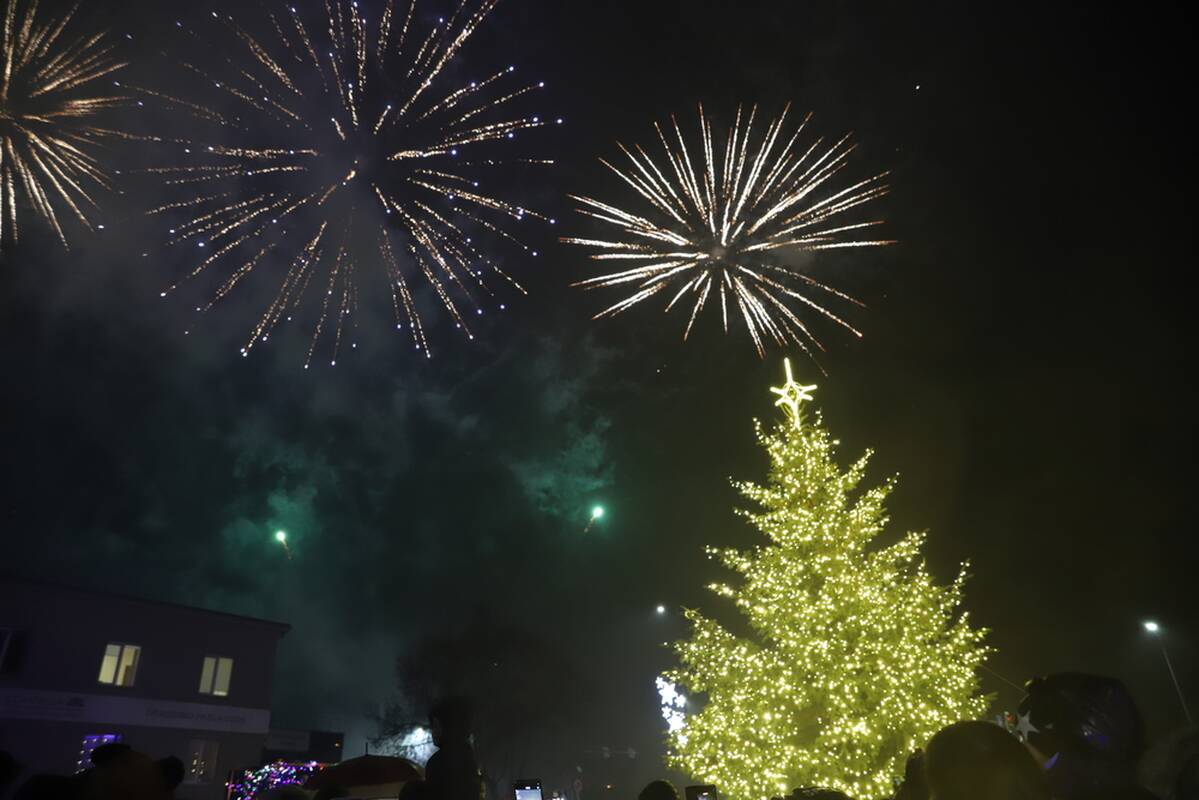 Tūkstančiais lempučių nušvitusi eglė simboliškai paskelbė šventinio laikotarpio pradžią Raseiniuose.