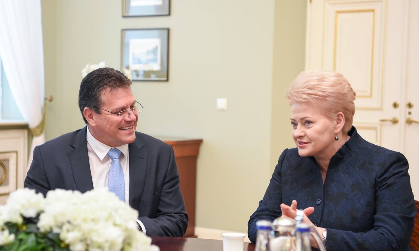 Trečiadienį susitikime su Europos Komisijos viceprezidentu Marošu Šefčovičiumi, atsakingu už ES energetinę sąjungą, Dalia Grybauskaitė pabrėžė, jog kovojant su neskaidria „Gazprom“ monopolija Europos dujų rinkoje, reikalingi ne simboliniai žingsniai, o realūs sprendimai.