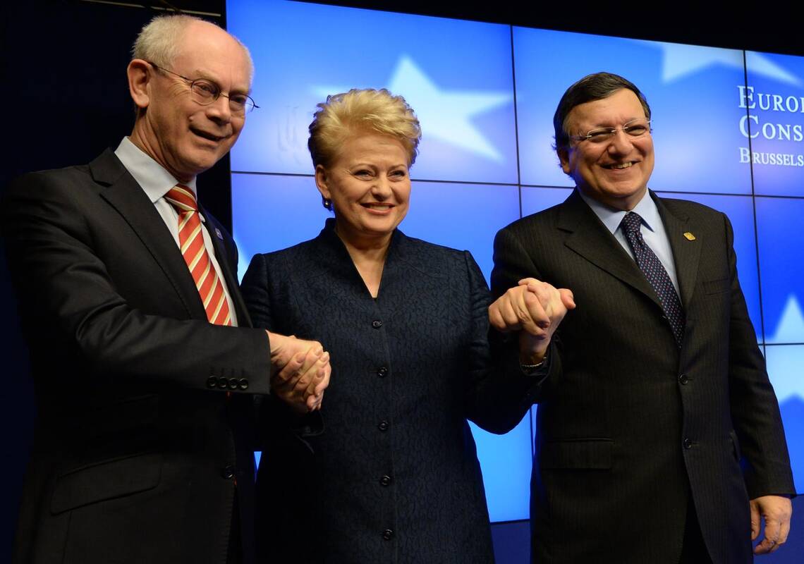 „Aš nenoriu būti malonus ar gražiai kalbėti, tik dėl to, kad jūs šalia“, – į D. Grybauskaitės pasisakymą sureagavo ES Vadovų Tarybos pirmininkas Hermanas Van Rompuy.