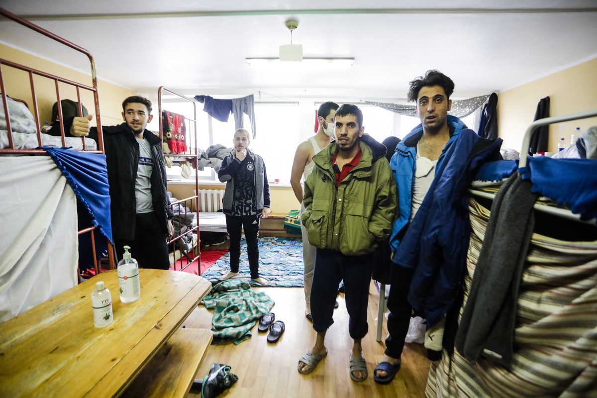 „Mūsų aštuonių asmenų šeima gyvena nedideliame kambaryje. Vietos tikrai trūksta, bet darbuotojai labai geri, daug padeda. Viskas neblogai. Ir maistas geras“, – kalbėjo migrantas Wlatas.