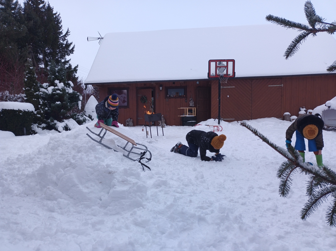Pramogos: Lukšiuose Papievių vaikai mėgaujasi didelio kiemo teikiamais džiaugsmais, o išvykose su tėvais noriai prisijungia prie sporto sirgalių. / S. ir M. Papievių asmeninio archyvo nuotr.