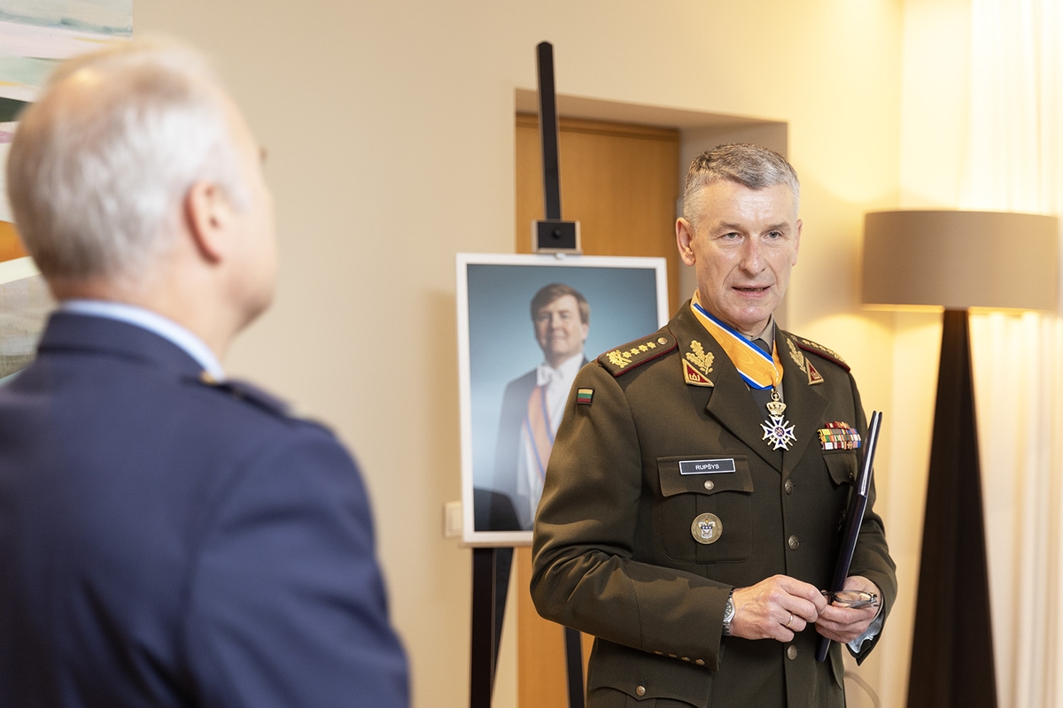 Už ypatingus nuopelnus stiprinant Lietuvos kariuomenę, svarų indėlį plėtojant Lietuvos ir Nyderlandų gynybinę partnerystę ir tarptautinį karinį bendradarbiavimą Lietuvos Respublikos Prezidentas Gitanas Nausėda Ordino „Už nuopelnus Lietuvai“ Komandoro kryžiumi šiandien apdovanoja Nyderlandų kariuomenės vadą generolą „Onno Eichelsheim“.