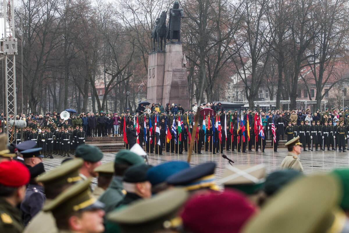 Karių rikiuotę, iškilmingą Lietuvos bei NATO sąjungininkų eiseną stebėjo užsienio šalių diplomatai ir gynybos atašė. Prezidentė Dalia Grybauskaitė sako, kad ši diena yra proga prisiminti visus šalies laisvės gynėjus, jų drąsą ir ištikimybę Lietuvai.