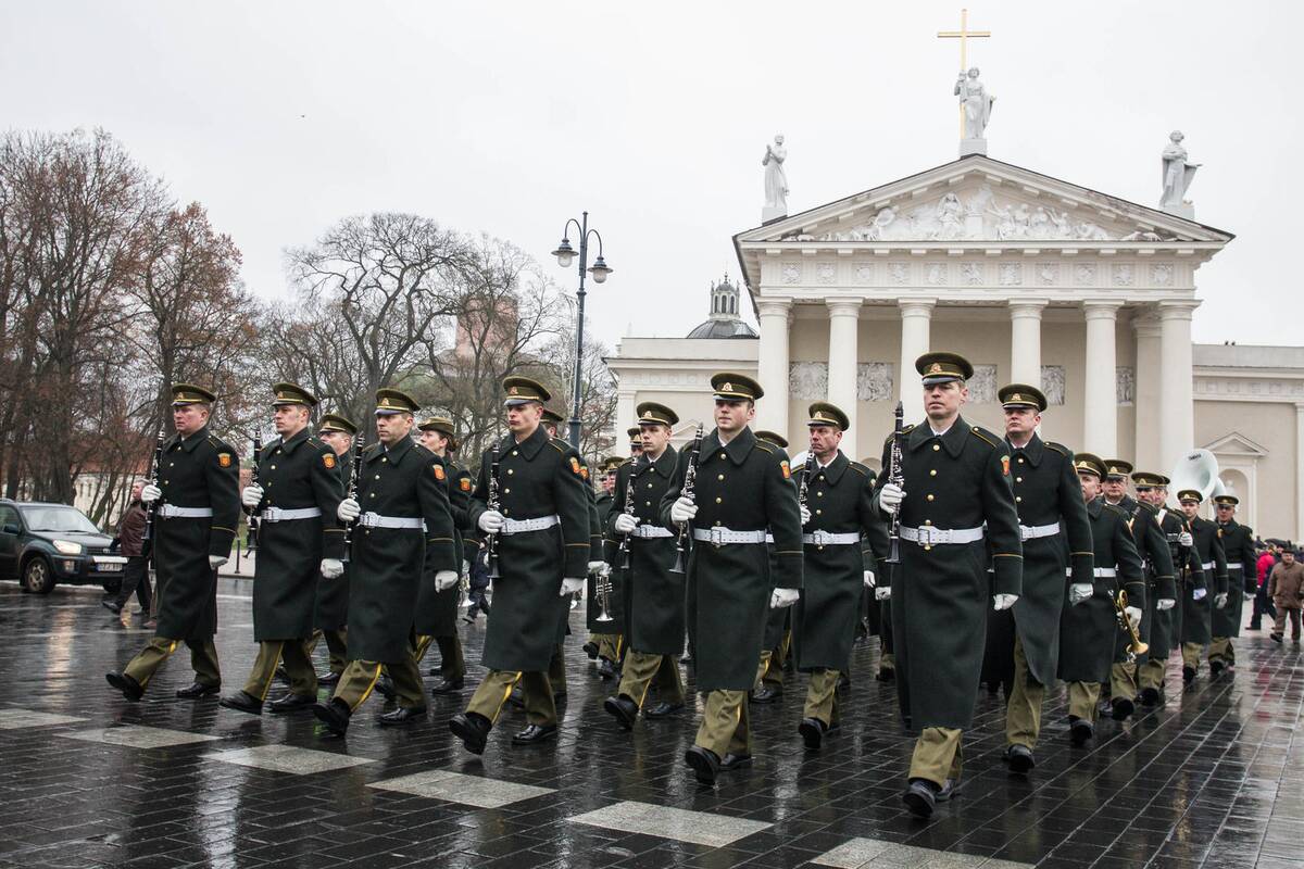 Keli šimtai žmonių Vilniuje ketvirtadienio vidurdienį rinkosi į Katedros aikštę minėti Lietuvos kariuomenės dienos – 99-ųjų jos atkūrimo metinių.